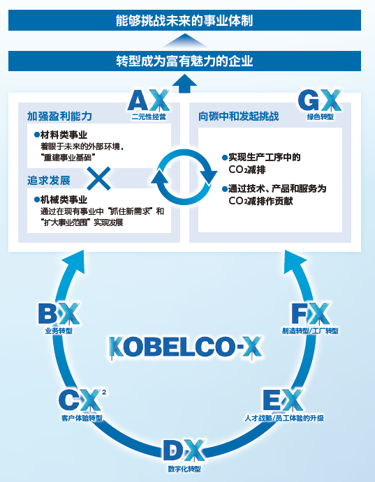 ※1 神钢集团为实现成为富有魅力的企业而必须推进的各项转型,统称为“KOBELCO-X”,并设定了七个具体的X。